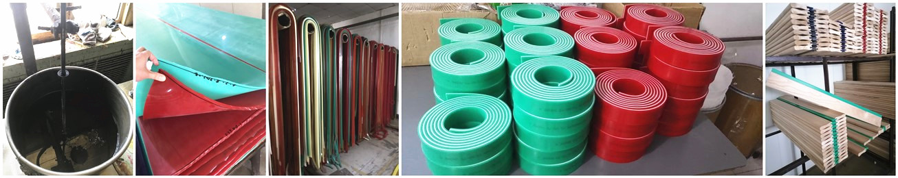 We use Imported raw materials, imported equipment for screen printing squeegee rubber. With superior solvent resistance, abrasion resistance, stability, especially for the electronics industry, suitable for all areas of high-grade printing.